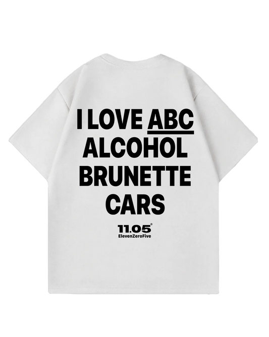 "I love ABC alcohol brunette cars" Oversized T-Shirt