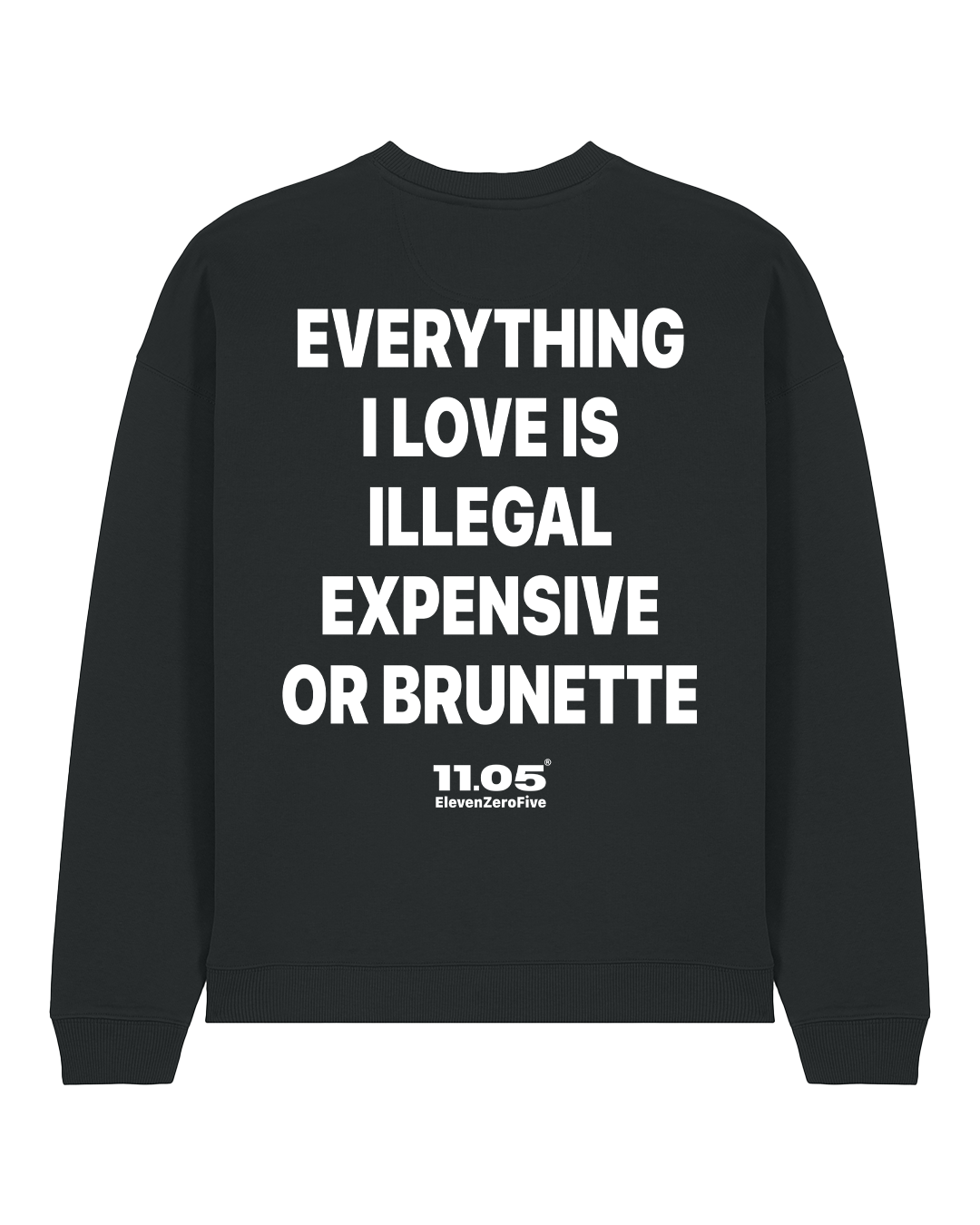 "Everything i love is illegal expensive or brunette" Crewneck Sweatshirts